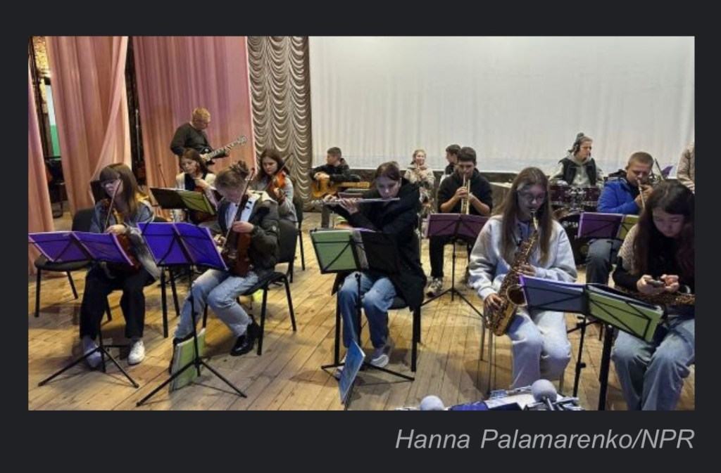 “The lives of Ukrainians have changed in many ways since Russia’s full-scale invasion in 2022, including the way nighttime sounds. Since the start of the war, the country has been hit with over 50,000 drone strikes. Members of a youth orchestra outside of Kyiv know the new sounds of their country well and are working on a sonic poem about it. The sound of the piece begins as a peaceful night or an ordinary day in an ordinary city, until chaos rocks the city. The orchestra members use their instruments to mimic the sounds they hear at night, from drones flying around to the emergency vehicles that pass by their homes. Listen to this State of the World From NPR episode to hear how the orchestra is channeling their daily reality into this composition.”